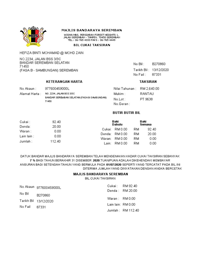 Here are 4 possible meanings. Sekiranya penjual tidak membayar tunggakan, pembeli dipertanggungjawabkan untuk membayar. Here's simple steps showing how you pay your mbpp (previously known as mppp majlis perbandaran pulau pinang, well now already upgraded to majlis bandaraya pulau pinang) assessment bill online. This is a notice regarding an increase in the valuation and hence increase in assessment rates. Bagi tahun taksiran 2020, kerajaan telah memperluas dan menaikkan had pelepasan cukai pendapatan individu melalui belanjawan 2021 bagi meringankan beban rakyat yang masih terkesan dengan keadaan semasa.